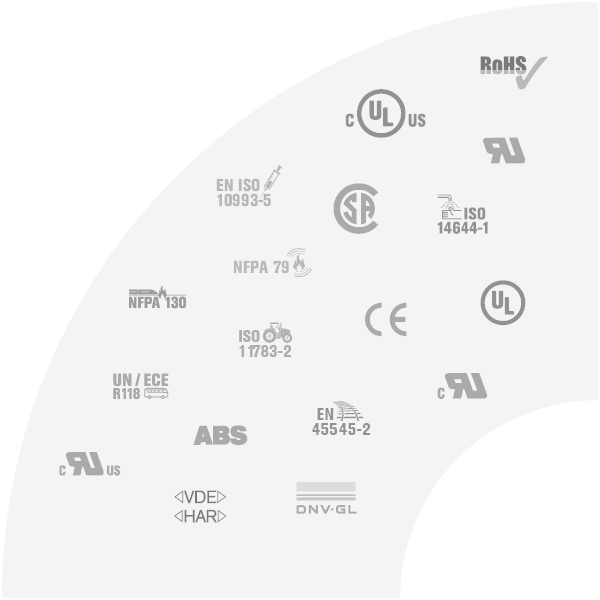 - UL, CSA, CE, VDE, HAR, IEC, EN, ISO, DNV, ABS, BSI